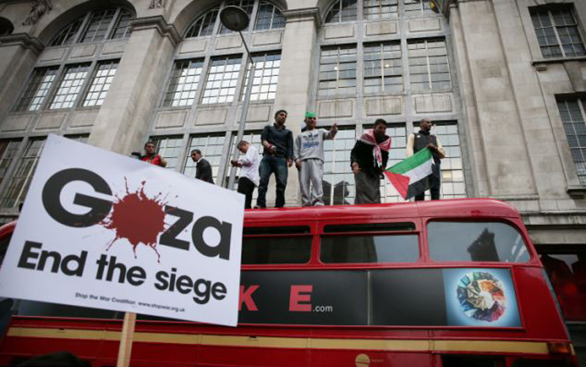 据每日邮报7月12日报道,伦敦数百民众游行抗议以色列对加沙地带的军事打击,甚至有17名示威者爬上巴士车顶,人们呼吁以色列停止对加沙的袭击,示威者堵塞了以色列大使馆外的肯辛顿大街,致使交通一度瘫痪。