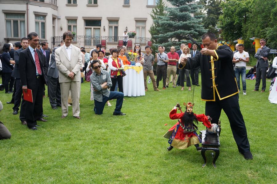 7月10日下午,中国驻多伦多总领事房利夫妇在官邸为中国民俗代表团举行了欢迎招待会。加拿大中国民俗文化节将在多伦多持续3天,于7月13日结束。预计3天中将会有数十万人前来观看欣赏。