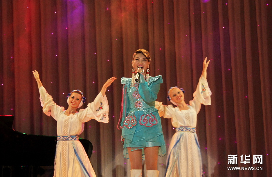 乌兰图雅在明斯克舞蹈团伴舞下演唱《牧歌》。新华社记者陈俊锋 摄