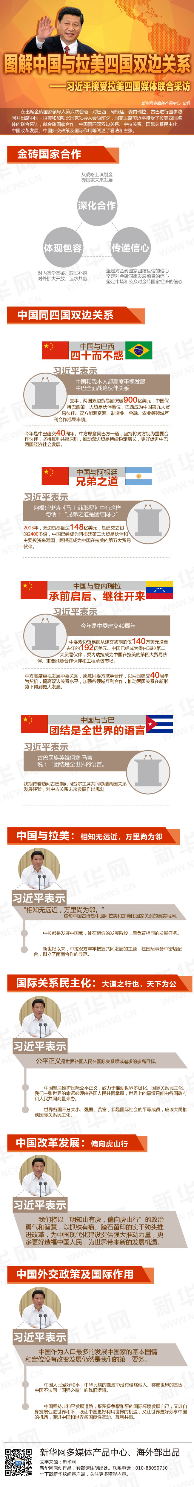 在出席金砖国家领导人第六次会晤,对巴西、阿根廷、委内瑞拉、古巴进行国事访问并出席中国-拉美和加勒比国家领导人会晤前夕,国家主席习近平接受了拉美四国媒体的联合采访。