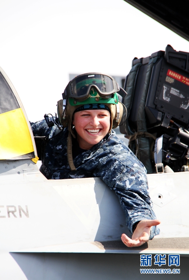 航母空中中队的一名女飞行员 新华网记者 彭茜摄