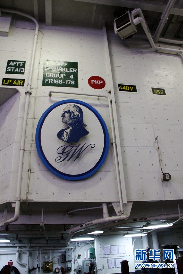 航母内的乔治·华盛顿画像 新华网记者 彭茜摄