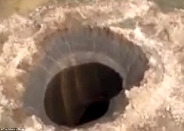 俄西伯利亚现直径80米深坑 成因不明