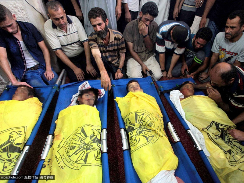 当地时间2014年7月16日,巴勒斯坦加沙地带,四名巴勒斯坦儿童在加沙上被以色列海军炮舰发射的一枚炮弹打死,一名儿童重伤。当问及特拉维夫的以色列军官时,他表示正在检查报告。据加沙卫生官员称,自以色列袭击至今已有207名巴勒斯坦平民死亡,这是巴以暴力冲突两年来最严重的一次。目前一名以色列人被加沙发射的火箭炮袭击死亡。