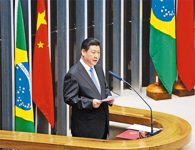 当地时间7月16日,国家主席习近平在巴西国会发表演讲。新华社记者 刘建生摄