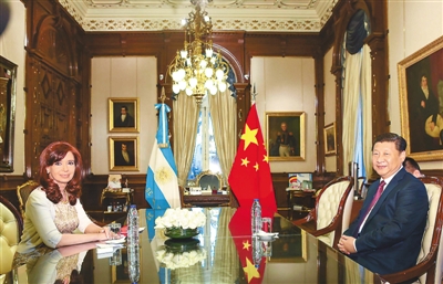 7月18日,国家主席习近平在布宜诺斯艾利斯同阿根廷总统克里斯蒂娜举行会谈,两国元首就中阿关系及共同关心的问题深入交换意见,达成重要共识,一致决定将中阿关系提升为全面战略伙伴关系,坚定把对方视为重要发展机遇和发展伙伴,加强互利合作和战略协作,造福两国和两国人民,增强新兴市场国家和发展中国家团结合作。
