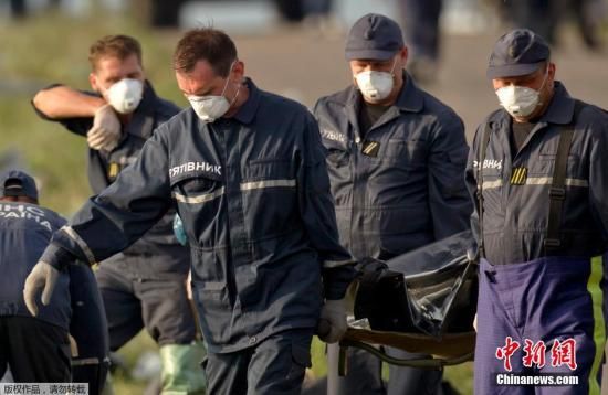 当地时间2014年7月19日,乌克兰Grabovo,救援人员在马航M17坠机事故的现场。国际社会要求控制马航MH17坠机事故现场的亲俄武装提供独立调查击落该机的凶手提供”迅速、全面、可靠、畅通无阻的”配合。