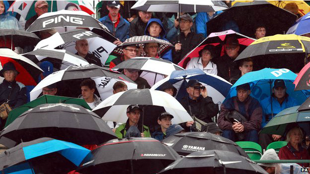英国高尔夫球公开赛的球迷在大雨中热情不减。