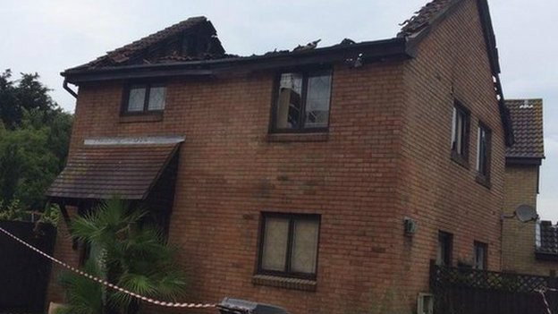 伦敦东北边郊区一户房屋在当地时间18日半夜遭到闪电击中,屋顶全垮,但屋内没有人受伤。