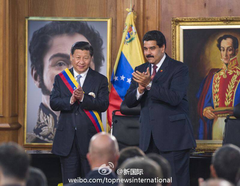 新华网北京7月21日电 据新华社“新国际”微博报道,习近平20日被委内瑞拉总统马杜罗授予“解放者”勋章。习近平说,这不仅是给予我个人的荣誉,更体现了总统先生和委内瑞拉政府对中委关系的高度重视。中委友谊必定像南美洲奥里诺科河一样绵延不绝、生生不息。(王晔摄)