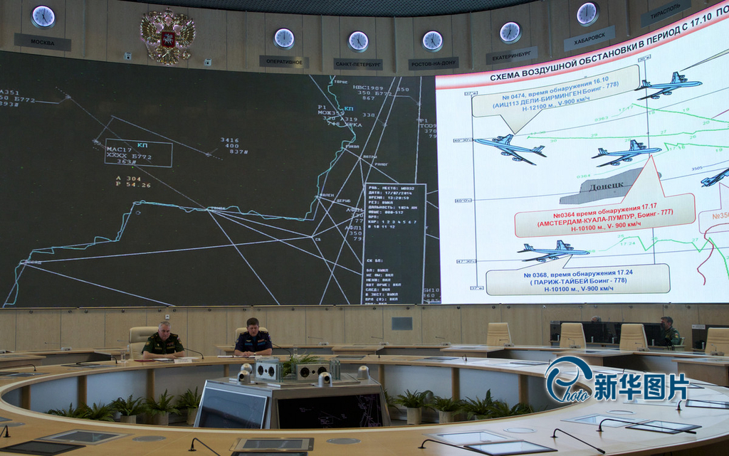 当地时间2014年7月21日,俄罗斯莫斯科,俄罗斯国防部表示,俄卫星照片显示,马航MH17客机坠毁前数天,乌克兰政府军在卢甘斯克市附近部署有“山毛榉”导弹系统。俄罗斯国防部还称其监控设备显示,在MH17坠机事故发生前,乌克兰战斗机曾经贴近马航飞机飞行。东方IC
