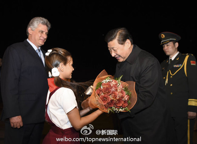新华网北京7月22日电 据新华社“新国际”微博报道,结束对委内瑞拉的国事访问后,习近平主席乘坐的专机经过3个多小时飞行,于当地时间21日晚抵达哈瓦那,开始对“加勒比明珠”古巴的国事访问。2011年,时任国家副主席的习近平曾经访问过古巴。(李学仁摄)