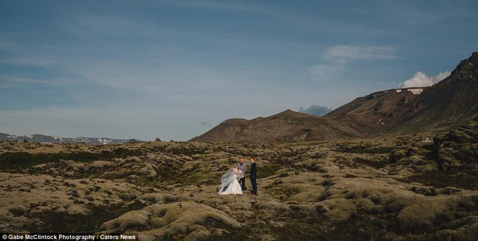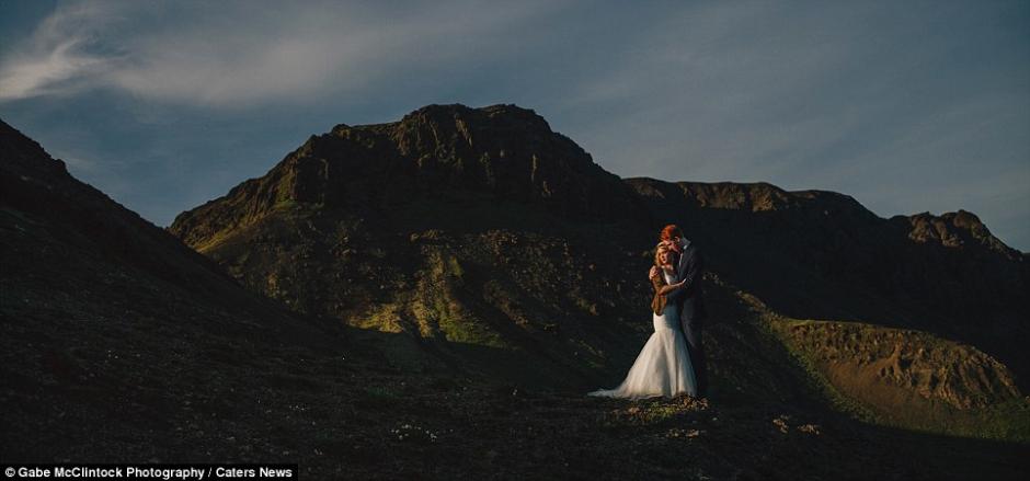 莎拉和乔希在冰岛崎岖的山地中举行了婚礼。
