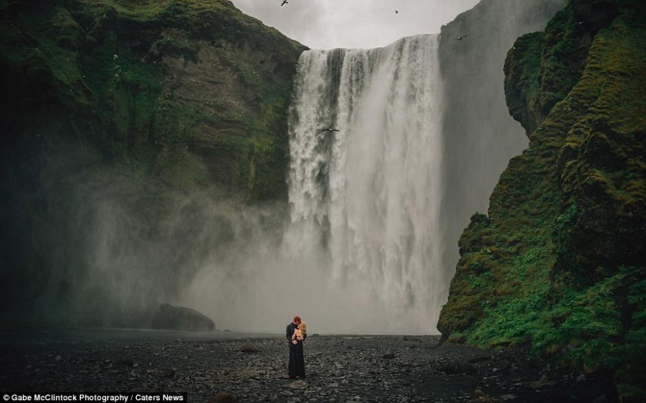 莎拉·沃克和乔希·沃克2人今年均为20岁,他们本来打算在俄亥俄州韦恩斯维尔举行婚礼。然而,两人突然决定提前“私奔”到他们的蜜月地点冰岛,在那里壮美的山脉与瀑布之前,举行了独属于两人自己的婚礼仪式。