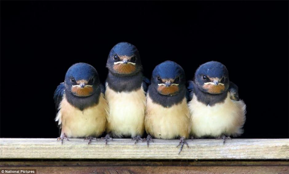 沃德表示,他在驾车回乡时正好看到这群小燕子,它们在一个货仓的旧门上排成一排,那种架势好像要把侵入者赶出地盘的意思。但实际上它们只是在等妈妈的食物。