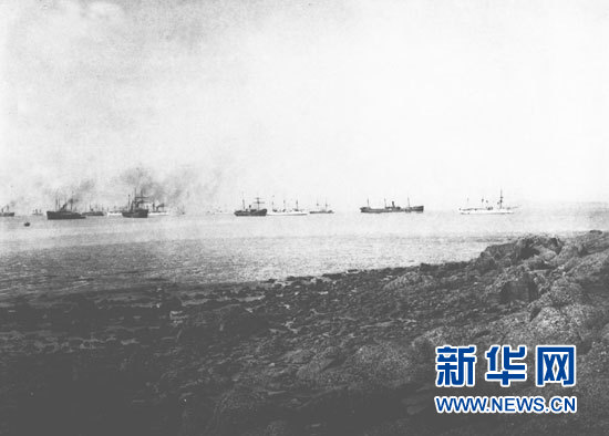 1894年6月16日,大岛义昌少将率领的日军混成旅团乘九艘运输舰,在“吉野”号等军舰的护卫下在朝鲜仁川登陆。 新华社发