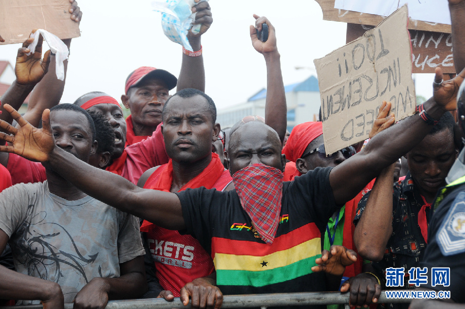 加纳首都阿克拉及库马西、海岸角、苏尼亚尼等其他大城市7月24日上午爆发游行示威,工人、农民、学生、医生、媒体工作者等走上街头,抗议政府近期大幅度上调油价、水电费、交通费,要求切实减轻百姓负担、挽救加纳货币塞地下滑颓势、制止经济形势继续恶化。