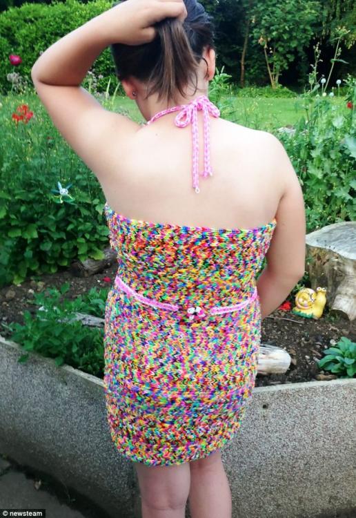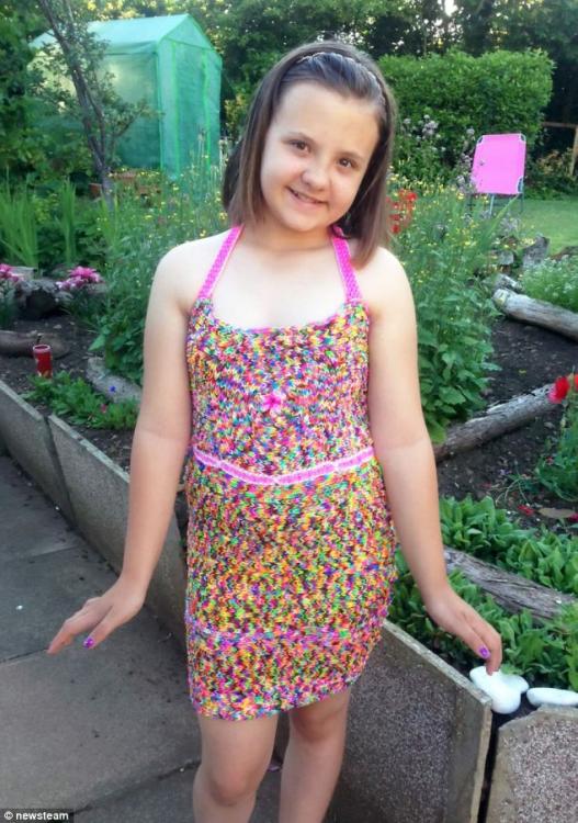 据报道,这条五彩裙是小女孩花费7天时间手工制作完成。衣服的材料是平时小女孩们最喜欢的编织手镯的塑料线,一般情况下女孩们只用来编手镯,但阿尔盖尔却编出了一件裙子。
