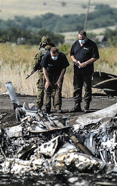 25日,乌克兰顿涅茨克,调查人员在马航坠机现场。