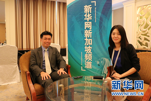 新加坡贸工部兼国家发展部高级政务部长李奕贤(左)接受新华网记者专访