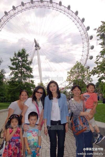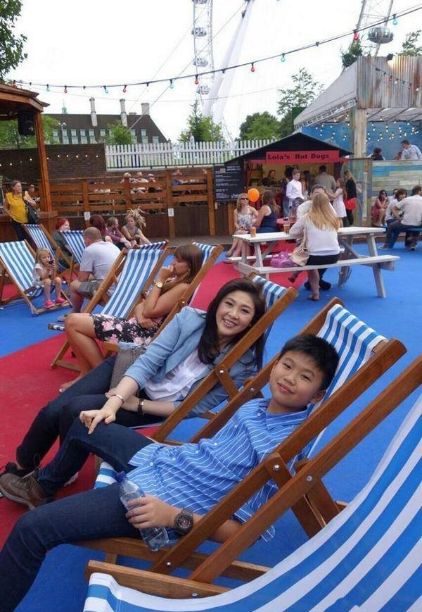 【环球网综合报道】据泰国《星暹日报》官方微博29日报道,结束为哥哥他信庆祝65岁生日的英拉,昨天飞抵英国,与儿子参观当地著名地标伦敦眼。