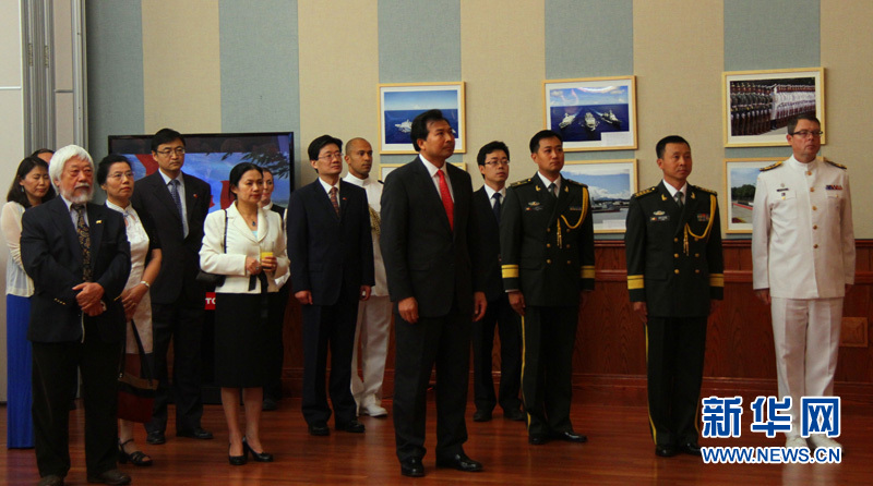 7月30日,中国驻加拿大使馆举行庆祝中国人民解放军建军87周年暨中国工农红军长征80周年招待会。图为加拿大皇家海军司令诺曼中将(右一)、中国驻加拿大大使罗照辉(右五)与中国驻加拿大使馆武官朱海涛(右二)等嘉宾出席招待会。记者 李保东 摄