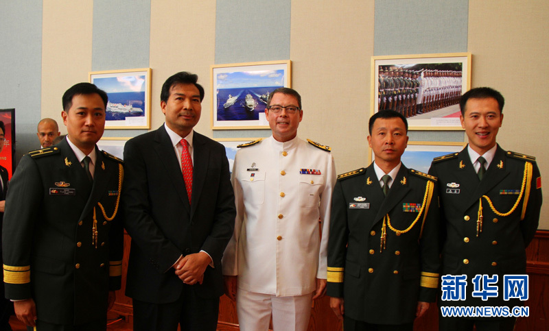 7月30日,中国驻加拿大使馆举行庆祝中国人民解放军建军87周年暨中国工农红军长征80周年招待会。图为加拿大皇家海军司令诺曼中将(中)、中国驻加拿大大使罗照辉(左二)与中国驻加拿大使馆武官朱海涛(右二)等合影。记者 李保东 摄