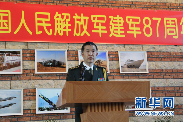王京国武官在致辞中向来宾介绍了中国梦所包含的和平、发展、合作、共赢的深刻内涵,阐述了中国的和平发展道路和防御性国防政策,回顾了中国人民解放军建军87年来取得的光辉成就,并介绍了我军近年来积极参加联合国维和、亚丁湾护航、人道主义救援等多样化军事行动的相关情况。