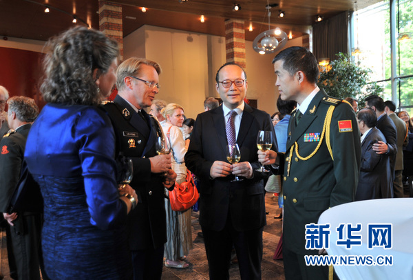新华网海牙7月31日电(记者潘治)中国驻荷兰大使馆陆、海、空军武官王京国大校于31日在此间举行招待会,隆重庆祝中国人民解放军建军87周年。中国驻荷兰大使陈旭夫妇和使馆全体外交官出席。荷兰宪兵司令莱廷斯中将以及荷政府其他部门官员、各国驻荷武官、国际组织官员, 在荷华人华侨、中资机构、留学生代表, 社会各界友好人士等200余人与会。