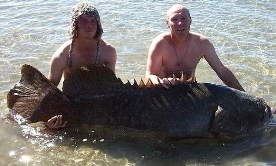 据香港“东网”8月1日报道,澳大利亚两名渔夫于上周末(7月26、27日),在昆士兰州布里斯班以北赫维湾一处码头,钓获一条巨型石斑鱼,估计该鱼体重超过100公斤。