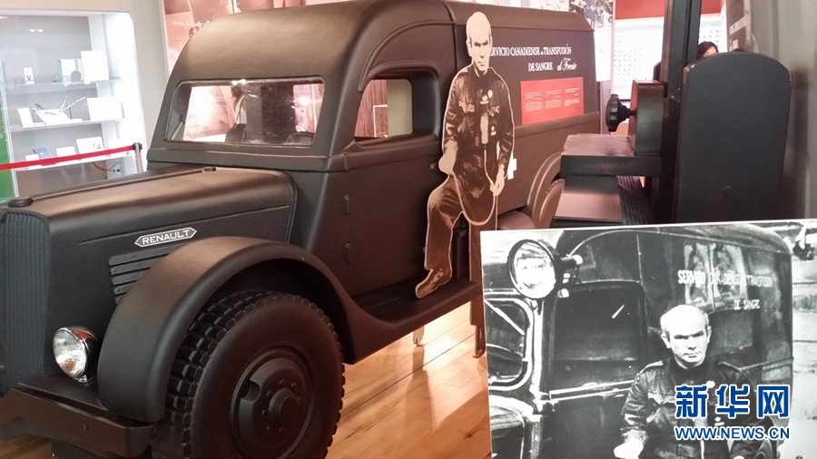 8月1日,加拿大白求恩故居纪念馆展出的白求恩创建的血液流动运输站模型。(新华网记者 晏忠华摄)