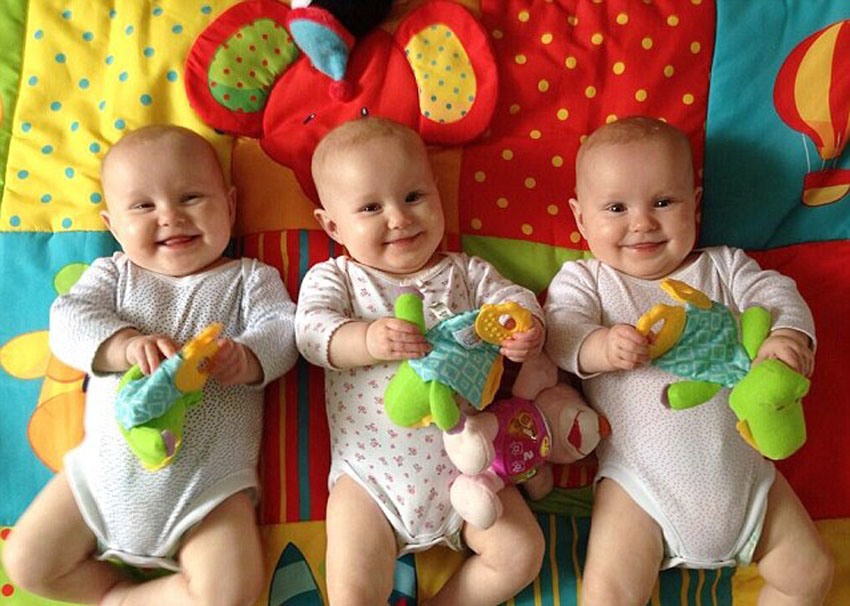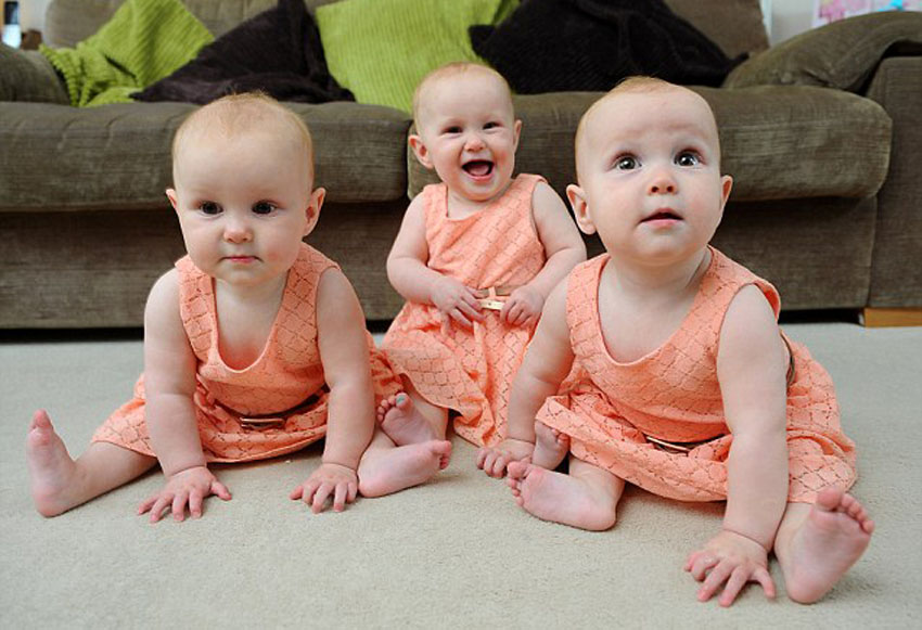 可爱三胞胎连她们的爸妈都分不清谁是谁(网页截图)