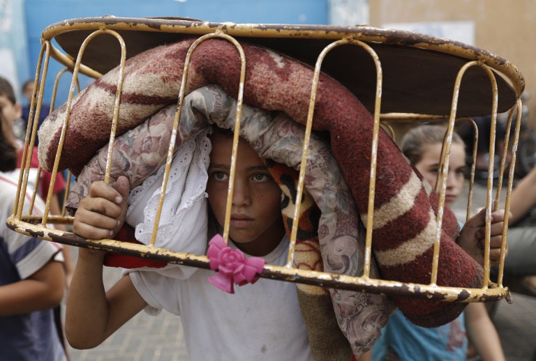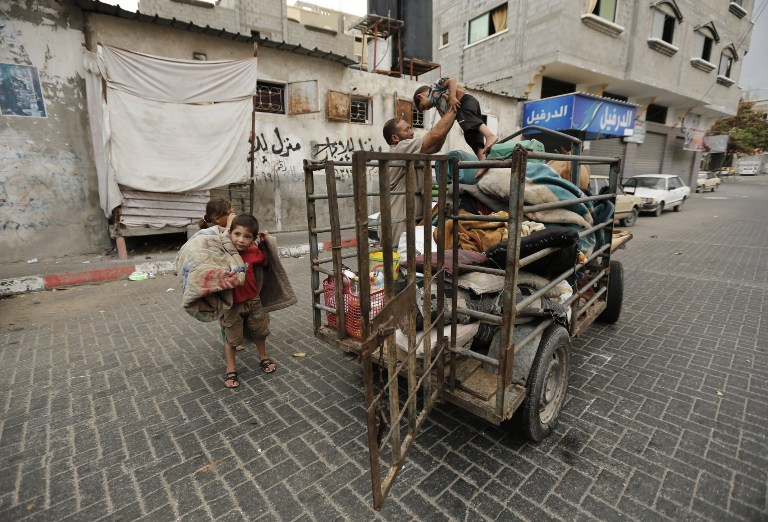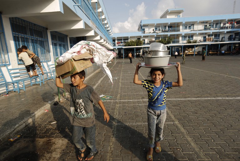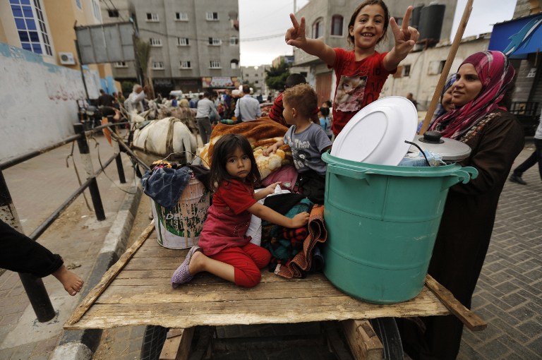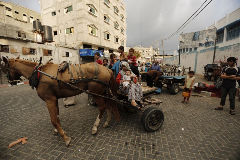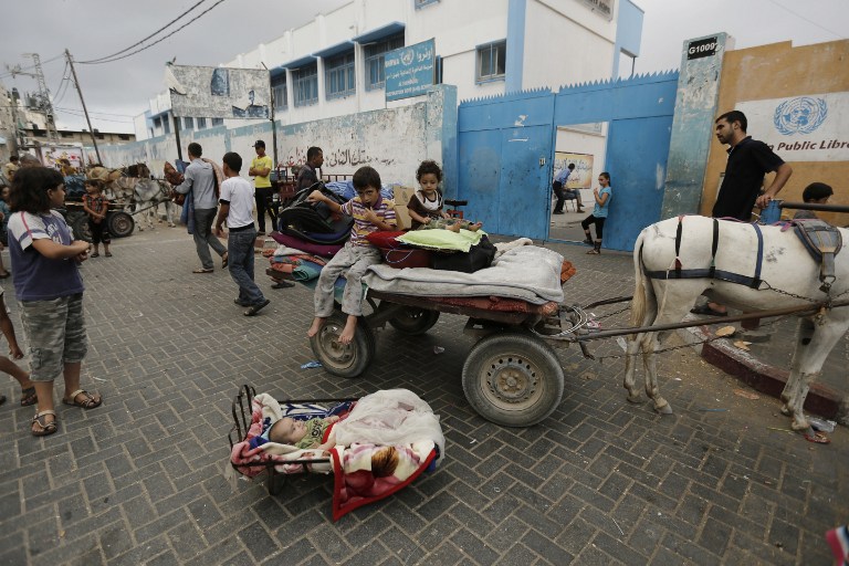 8月5日,以色列和哈马斯在埃及斡旋下达成的72小时停火协议早晨8点生效,巴勒斯坦难民带着行李离开联合国建在加沙北部正用作避难所的学校。以色列表示将完全从加沙地带撤军,并与哈马斯实现停火。