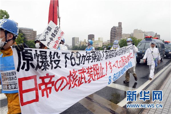 新华网广岛8月6日电(记者刘秀玲)日本广岛市6日举行仪式,纪念该城市遭受原子弹轰炸69周年。同时,约1000名日本市民在广岛市内举行示威游行,抗议安倍出席广岛纪念活动、反对解禁集体自卫权。