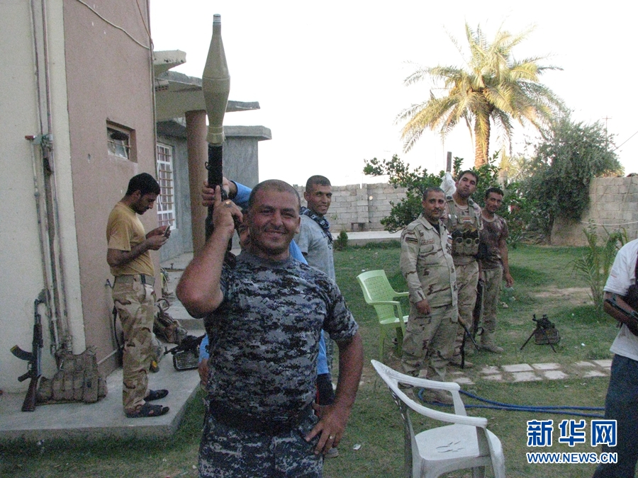 7月29日,在伊拉克萨拉赫丁省杜卢伊耶镇,伊拉克警察和士兵在战斗间隙。在过去一个多月,当地部族武装联合伊拉克军队和警察等安全部队,共同抵抗“伊斯兰国”极端组织分子的进攻。杜卢伊耶镇位于首都巴格达以北大约90公里。(新华网 夏兰· 朱布里 摄)