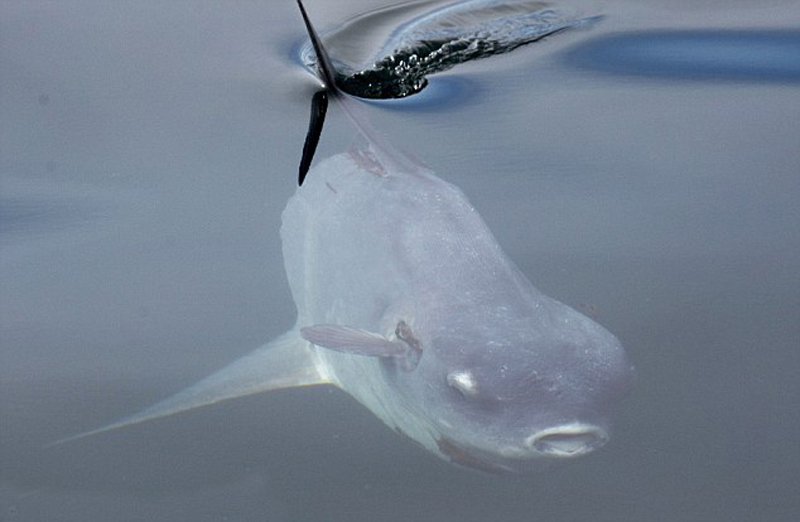摄影师加州海岸捕捉到罕见翻车鲀鱼水面觅食照