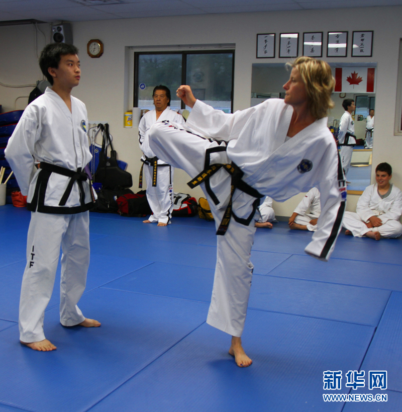 学员在加拿大苍轩跆拳道国际联盟内练拳。记者 李保东 摄