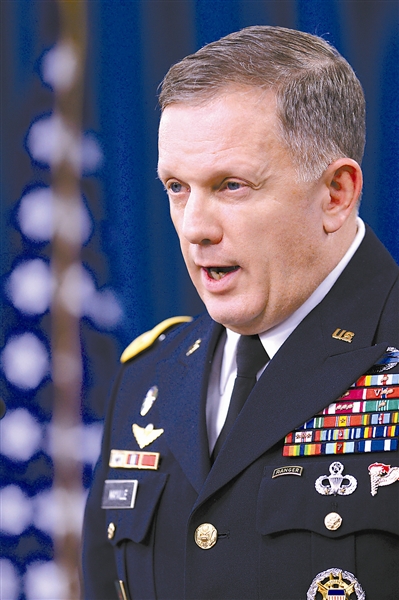 8月11日,美国国防部陆军中将梅维尔在五角大楼出席记者会时说,美军自8日开始对伊拉克极端组织目标发动空袭以来,已执行15次“定点”空袭任务摄影/新华社记者 殷博古