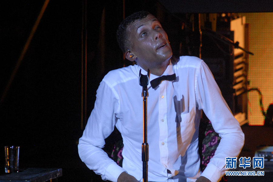 8月11日晚,在突尼斯首都突尼斯市的迦太基古罗马剧场,比利时歌手司徒迈(Stromae)用劲爆的流行音乐引燃了现场的气氛。2014年正值迦太基国际艺术节举办50周年,组委会邀请了不同国家、风格迥异的艺术家进行数十场演出,为突尼斯观众献上了一道分量十足的文化大餐。图为比利时歌手司徒迈在舞台上表演。阿代尔 摄