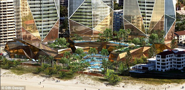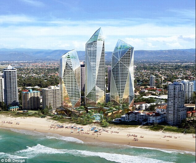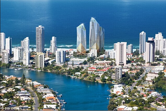 万达称,“珠宝”三塔将成为黄金海岸海滨上第一个五星酒店与公寓复合的项目。