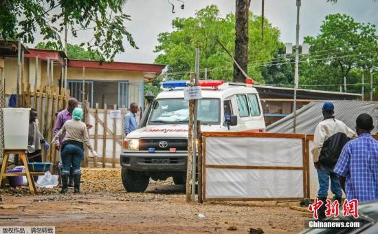当地时间2014年8月10日,塞拉利昂凯内马,一辆救护车载着埃博拉患者遗体离开隔离区,前往掩埋处,这些尸体感染性极高。过去的数十年内,埃博拉病毒曾经肆虐10个非洲国家,包括刚果,刚果的第一例埃博拉患者报告发生在1976年,但今年之前,埃博拉病毒从未影响过西非国家。