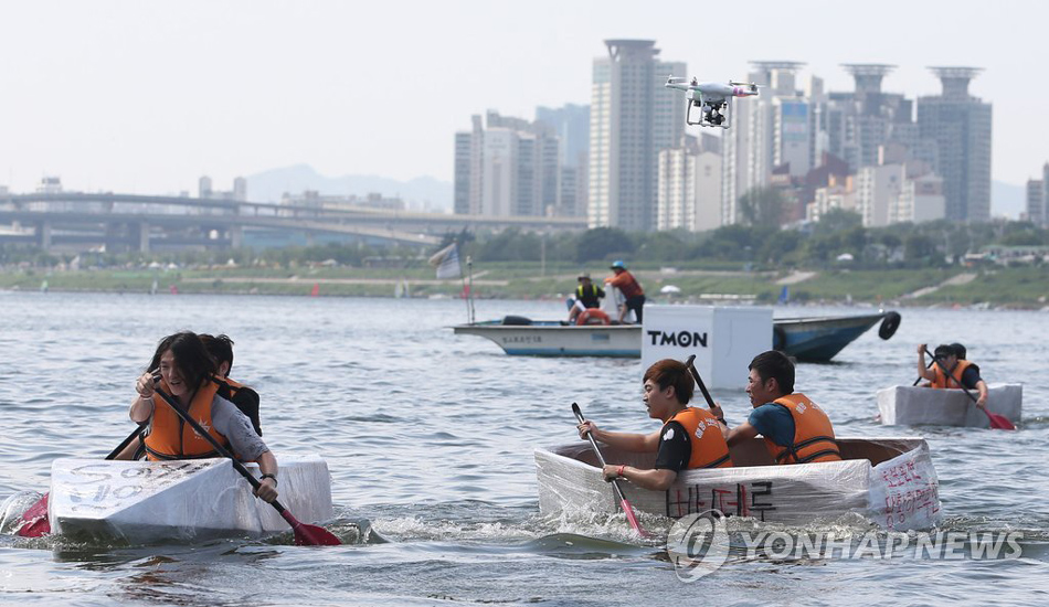 韩国赛船新玩法:划纸船过汉江(网页截图)