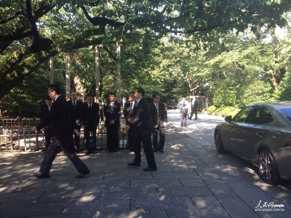 当地时间8月15日上午,日本内阁成员古屋圭司参拜靖国神社。(人民网 赵松摄)