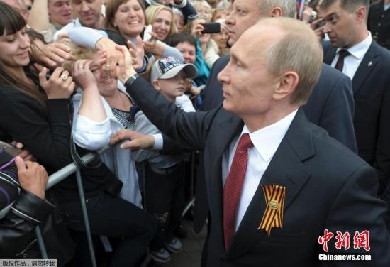 资料图:5月9日,俄罗斯总统普京在克里米亚塞瓦斯托波尔出席纪念卫国战争胜利69周年的庆祝活动,与当地民众握手。这是3月克里米亚全民公投后加入俄联邦以来,俄罗斯总统首次到访克里米亚和塞瓦斯托波尔。