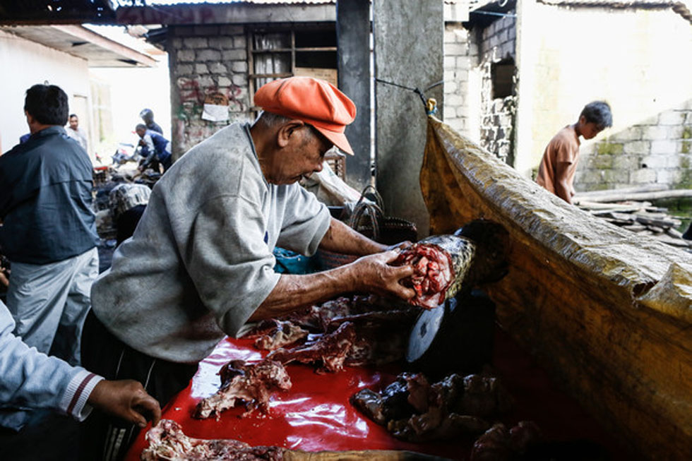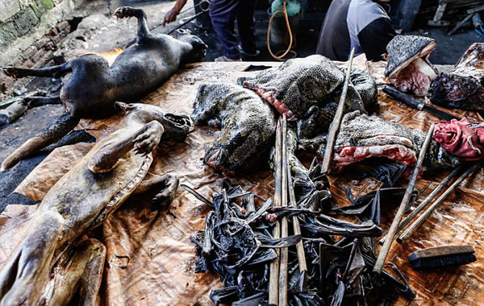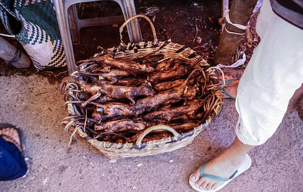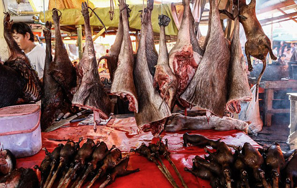 国际在线专稿:据IndiaTimes8月12日报道,位于印度尼西亚苏拉威西岛北部米纳哈沙(Minahasa)Langowan的传统市场很可能是全世界最恐怖的市场。这里有许多野生动物肉摊,包括野猪、猴子、蝙蝠在内的濒危且受保护的动物在这里能随便买到。其它动物还包括老鼠、猫、蛇、蜥蜴、雪貂等等。