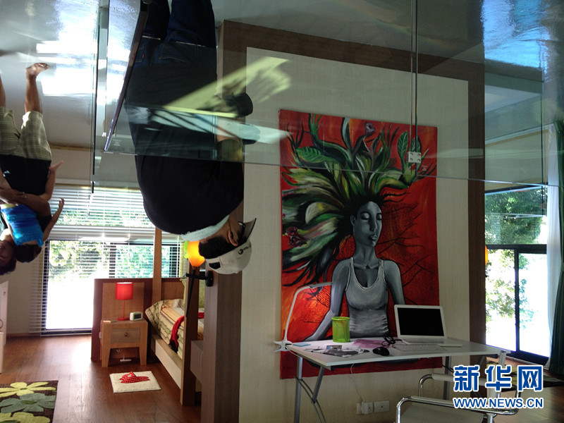 几名游客在“倒立的房子”中。新华社记者杨云燕摄。