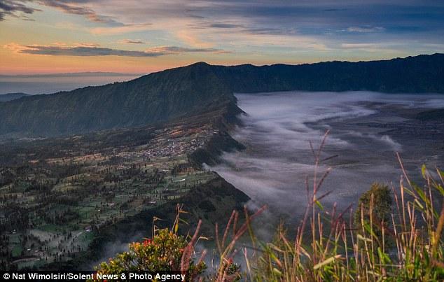 印尼婆罗摩火山海拔7500英尺,具有十分美丽的景色。英国《每日邮报》14日发布了一组婆罗摩火山的壮丽图片,让人惊叹自然美景。图片中央是位于东爪哇省的火山口,27岁的摄影师表示,当他旅行到此时,完全禁不住美景的诱惑,将当地从早到晚的景色全部记录下来。“这块平原一般都被大雾笼罩,早上看来就像是雾的海洋。”(网页截图)