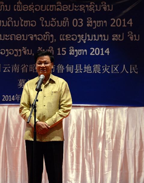 老挝社会各界为中国云南鲁甸地震灾区捐款