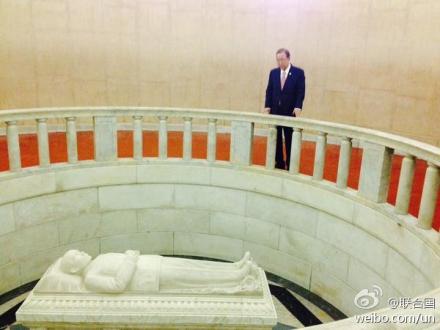 联合国秘书长潘基文16日在南京参观中山陵。(图片来源:联合国官微)