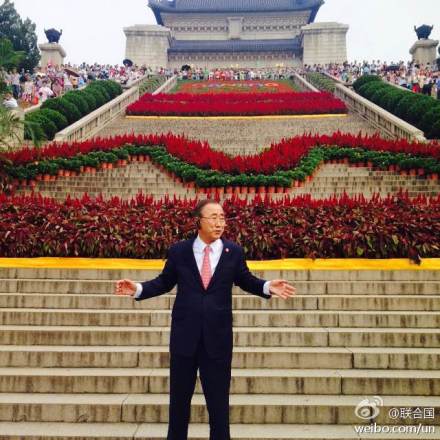 联合国秘书长潘基文16日在南京参观中山陵。(图片来源:联合国官微)